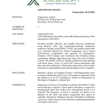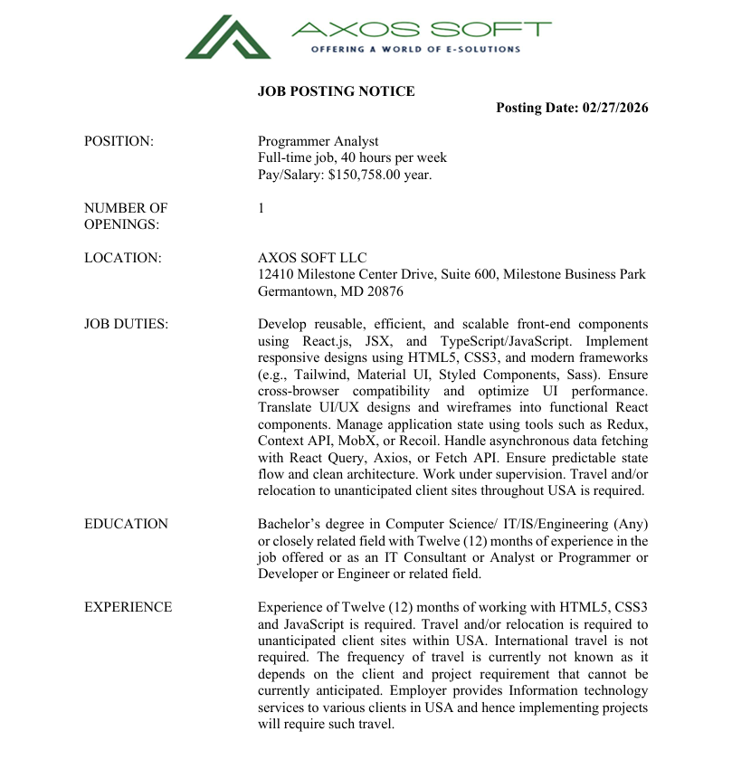2.Category : Programmer Analyst JOB-ID: 2026:1301