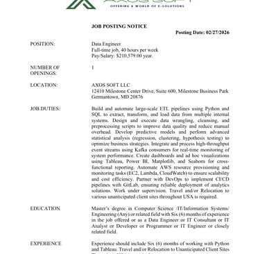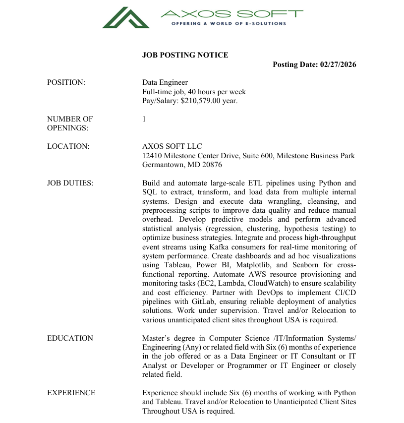 1.Category : Data Engineer JOB-ID: 2026:1300